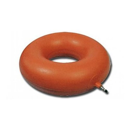 Cuscino gonfiabile antidecubito stampato in gomma rossa. Particolarmente indicato per alleviare la compressione durante la seduta e per limitare la formazione di piaghe da decubito nei pazienti allettati.