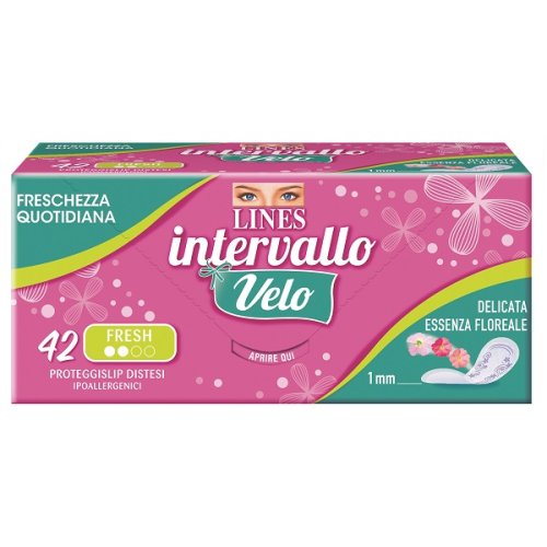 Scoprire la gamma Lines Intervallo Velo, i proteggislip Lines creati per donare una straordinaria sensazione di freschezza durante tutto il giorno, così confortevoli da non sentirli addosso. L'incredibile flessibilità di Lines Intervallo Velo garantisce il massimo del comfort in un solo millimetro di spessore. Grazie alle fibre superassorbenti il prodotto assicura, inoltre, la protezione di cui c'è bisogno.