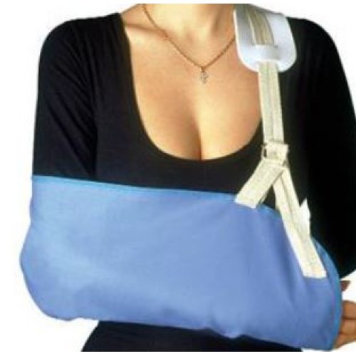 Dispositivo utilizzato in caso di slogature, traumi ed ingessature del braccio consente l’immobilizzo in posizione corretta dell’arto superiore. Regolabile con bretella e fibbia.